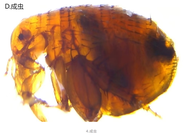 4.肉眼可見快速跳動(dòng)的深褐色小蟲(跳蚤成蟲)。