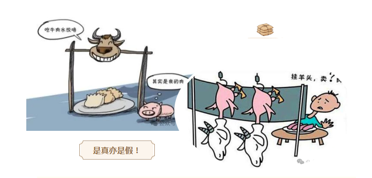 例如:豬肉摻入牛肉、雞肉摻入羊肉等……