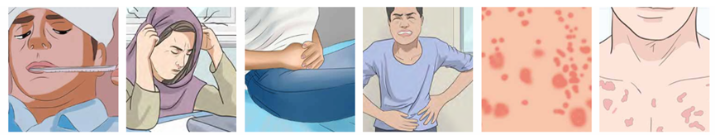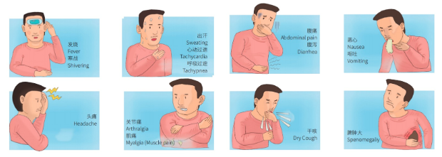 媒介伊蚊叮咬患者或隱性感染者后,通過叮咬傳播給其他人。潛伏期為1~14天,多為4~7天。臨床癥狀表現(xiàn)為發(fā)熱(可持續(xù)2~7天),劇烈頭痛、肌痛、關(guān)節(jié)痛、眼眶痛、食欲減退、惡心、嘔吐和皮疹,嚴(yán)重時(shí)可發(fā)展為重癥登革熱,出現(xiàn)出血、休克等危險(xiǎn)情況。