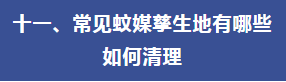 (二)小區(qū)、單位、工地等公共區(qū)域。對室內(nèi)外孳生地進(jìn)行清理,重點(diǎn)關(guān)注綠化帶、停車場、垃圾或雜物暫存點(diǎn)、地下車庫集水井、排水溝、樓梯間、樓房反墚及雨水溝、建筑物凹陷處等,主要采取清理衛(wèi)生死角、翻盆倒罐、沙土填埋、投放滅蚊幼劑等方式。
